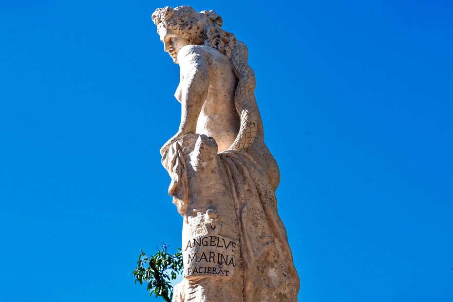 At the edge of the Villa Godi Malinverni garden, on the entrance pillars to the museums, there are two fantastic early 18th-century sculptures by Angelo Marinali, the younger brother of the more famous Orazio. The two figures, signed by the artist, represent Time, which, having halted its course, rests in position and yields to Eternity, to which it gazes. In the park, visitors can admire a small collection of 19th-century epitaphs in the "Corner of Memories" and a statue of a nymph that greets us by the beautiful romantic pond.